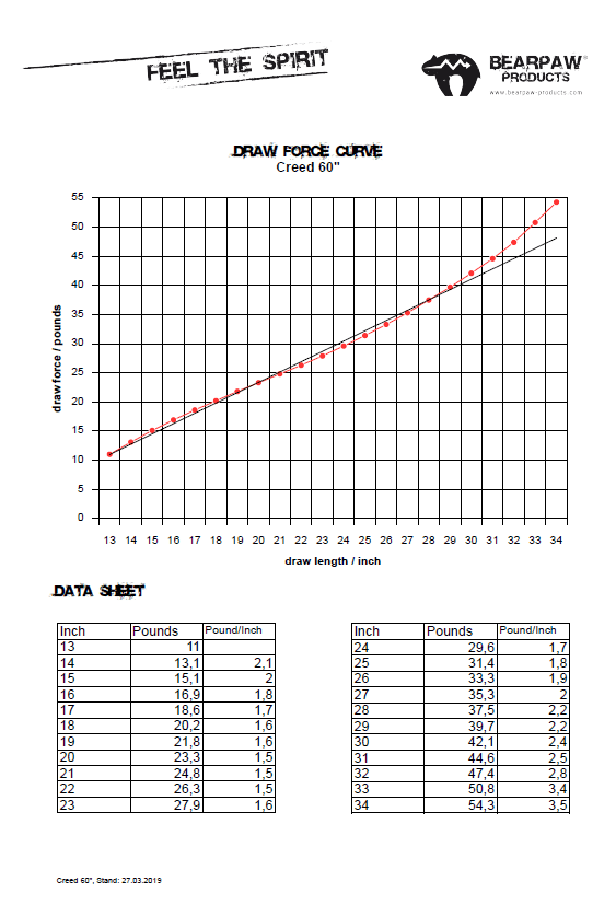 - Zuggewicht: 20 – 50 lbs in 5 lbs Stufen